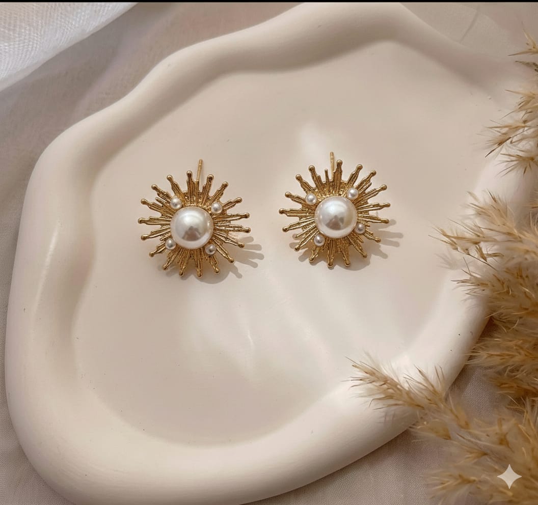 Celestial Pearl Sunburst Gold-Plated Stud Earrings